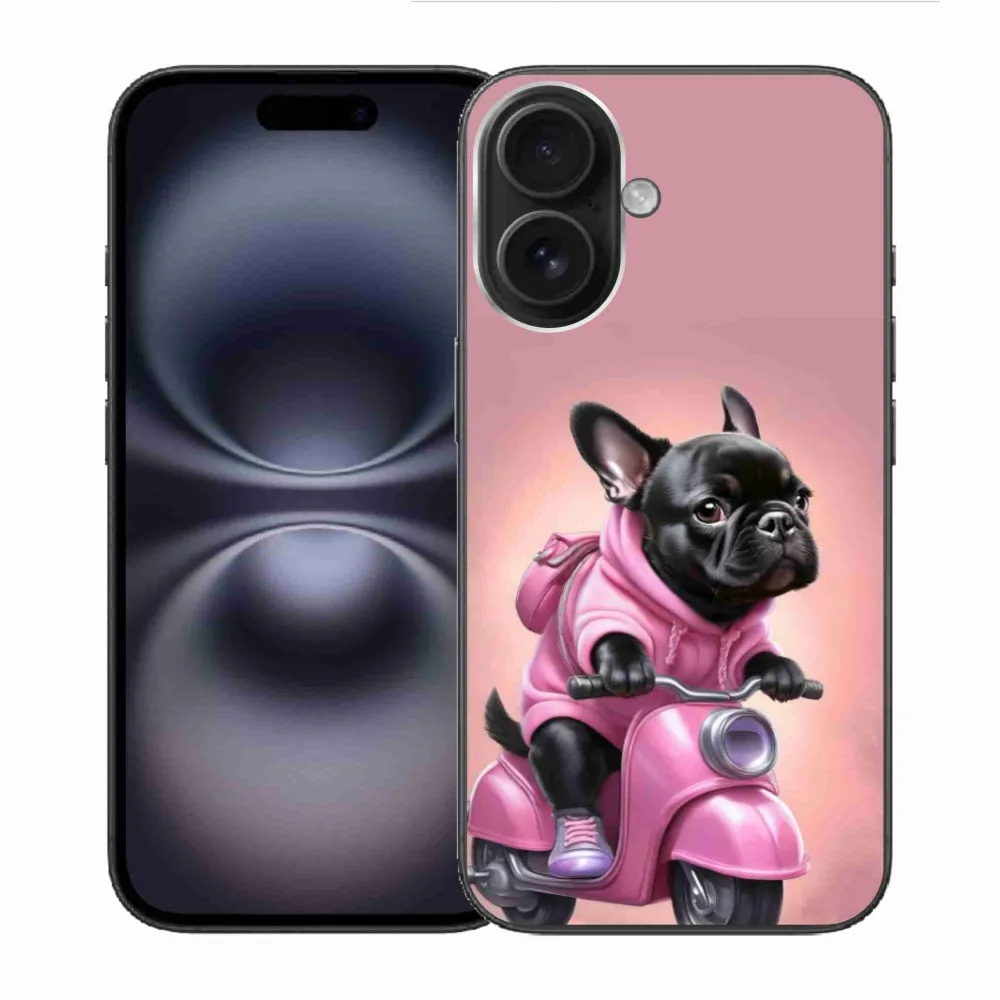 Psí pouzdro na iPhone 16 - francouzský buldoček na skútru poskytuje všechny výhody gelových obalů, a to v zajímavém designu.