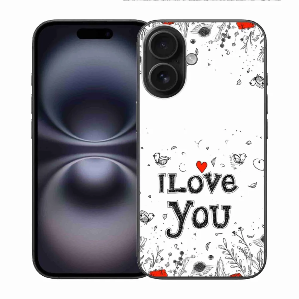 Pružný gelový obal mmCase s obrázkem na iPhone 16 - I love you bílé pozadí