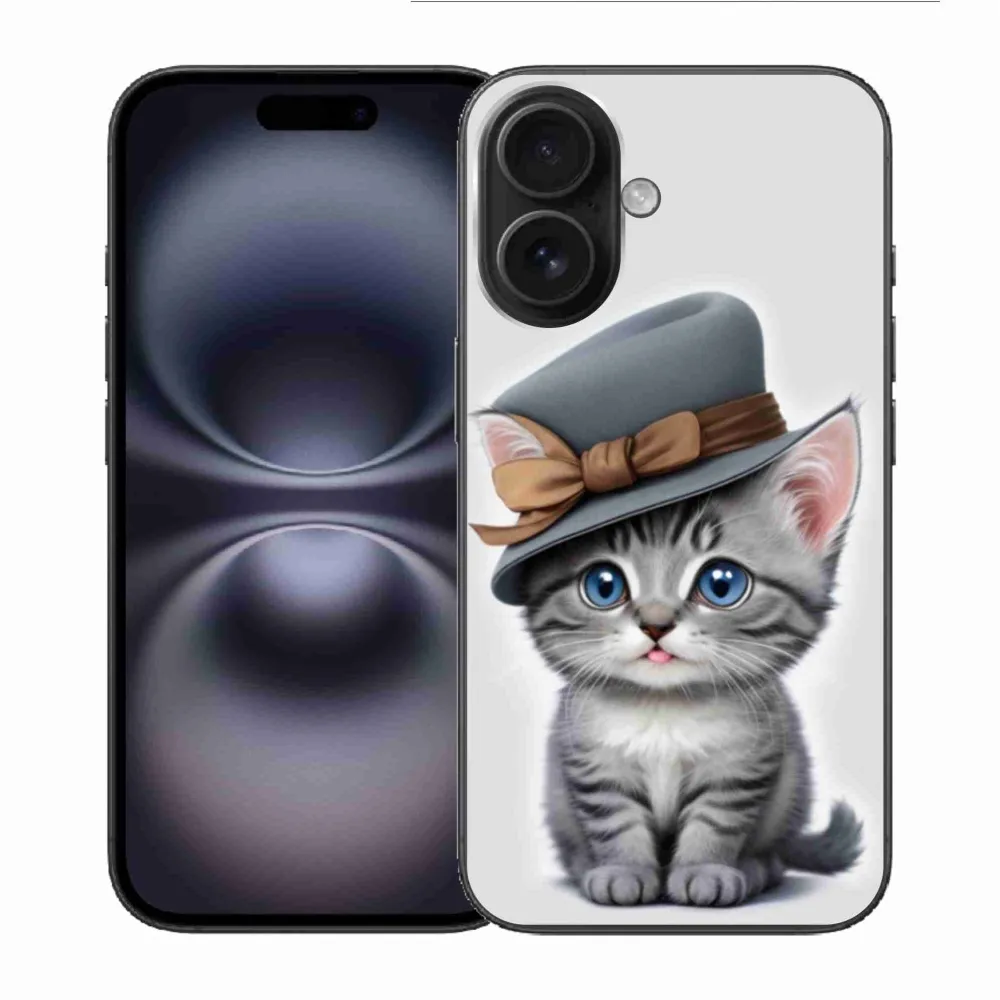 Pružný gelový obal mmCase s obrázkem na iPhone 16 - kotě s kloboukem