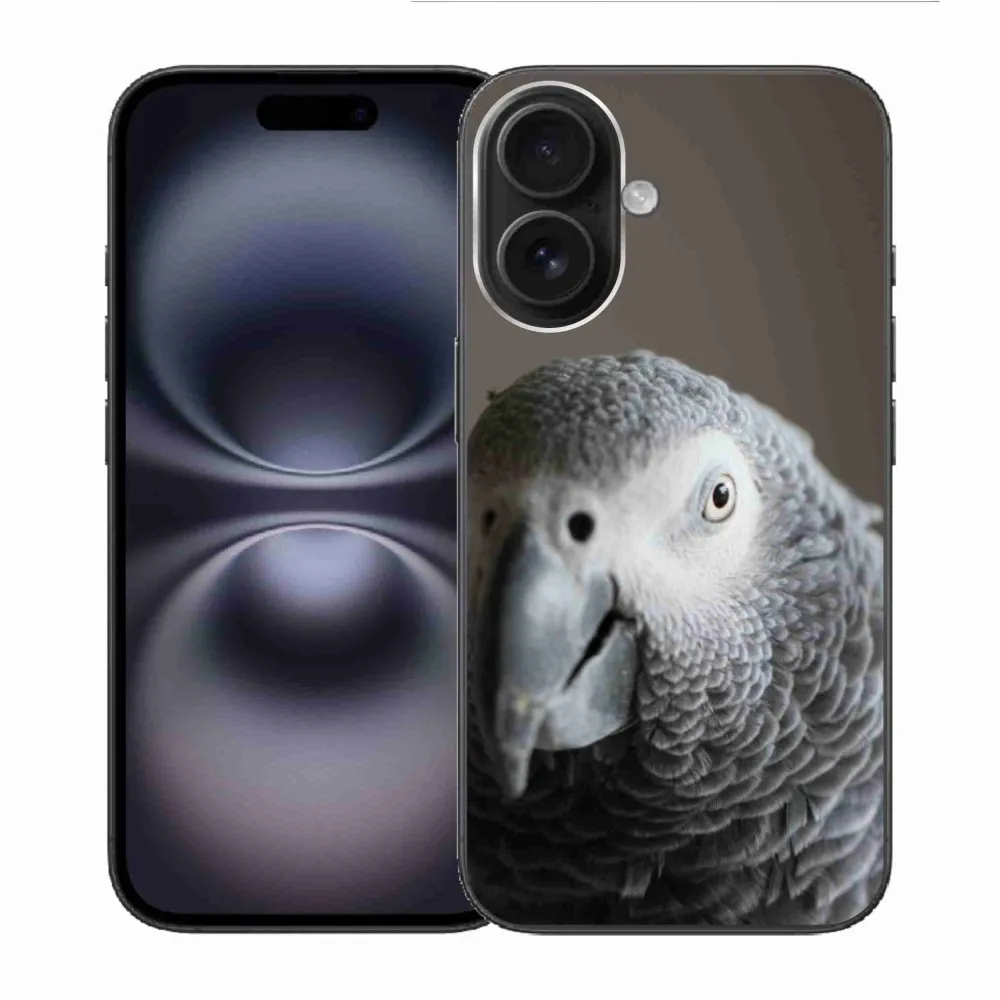 Pružný gelový obal mmCase s obrázkem na iPhone 16 - papoušek žako 2