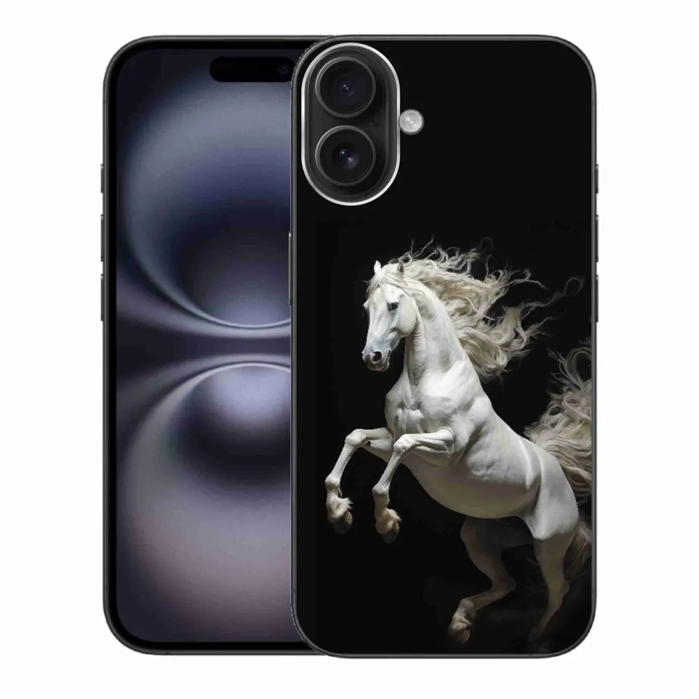 Pružný gelový obal mmCase s obrázkem na iPhone 16 Plus - bílý kůň 4