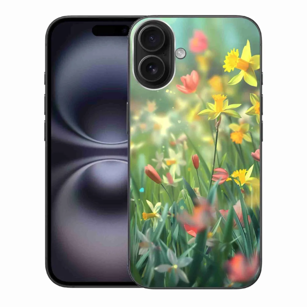 Květinové pouzdro na iPhone 16 PLus - jarní květy poskytuje všechny výhody gelových obalů, a to v zajímavém designu.