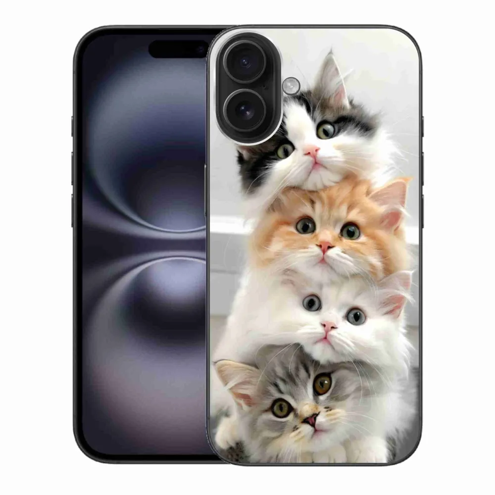 Kočičí pouzdro na iPhone 16 PLus - kočičí parta poskytuje všechny výhody gelových obalů, a to v zajímavém designu.