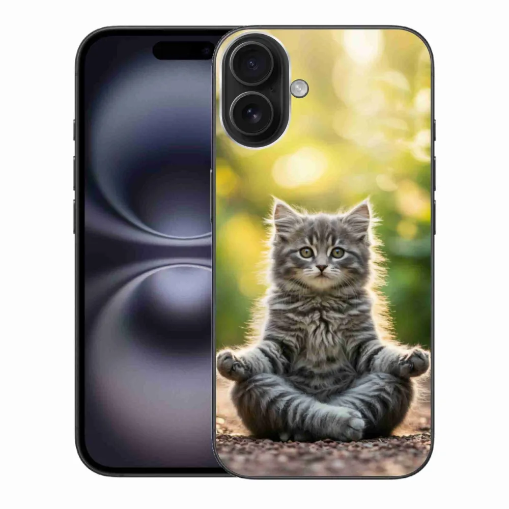 Kočičí pouzdro na iPhone 16 PLus - meditující kotě poskytuje všechny výhody gelových obalů, a to v zajímavém designu.