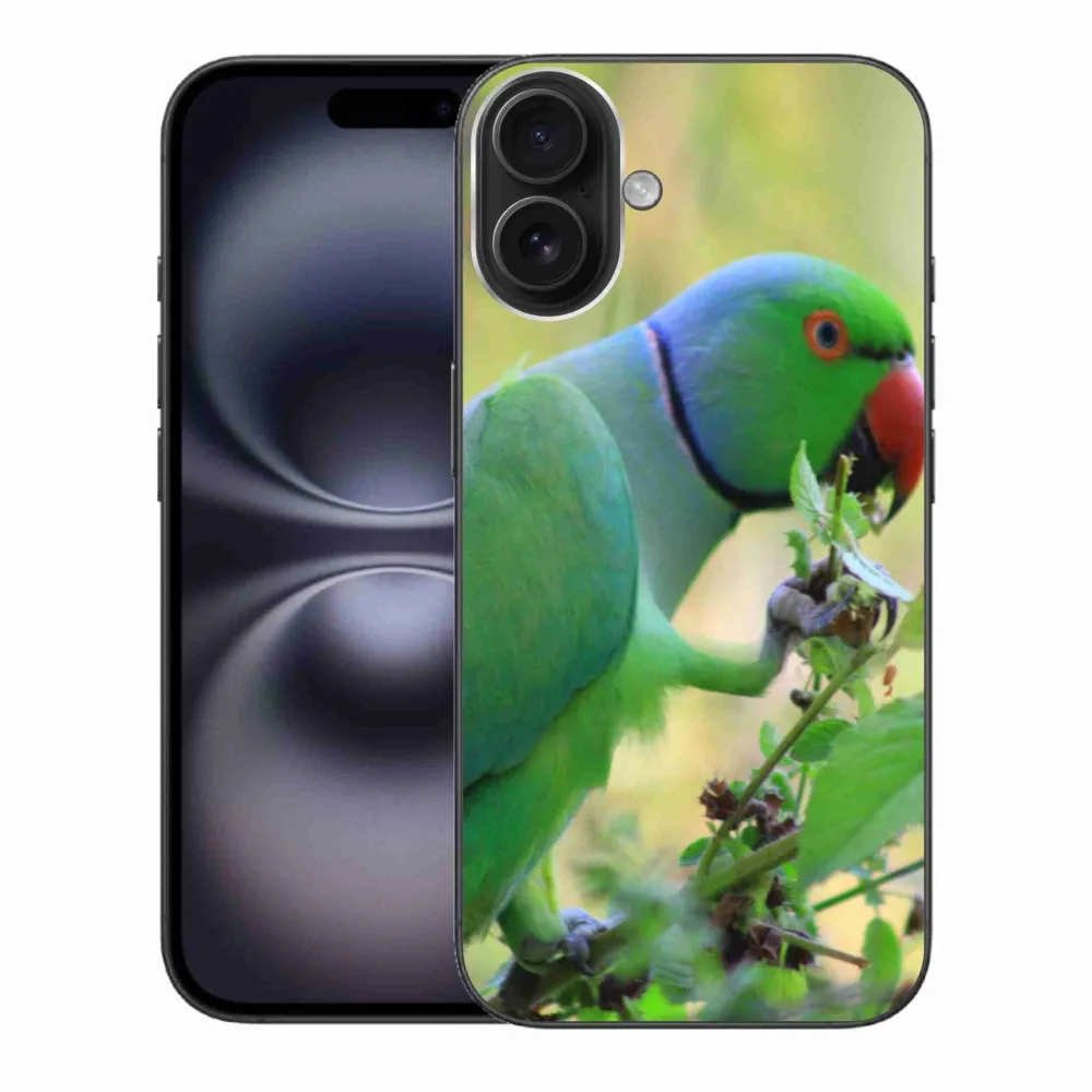Ptačí pouzdro na iPhone 16 PLus - papoušek alexandr poskytuje všechny výhody gelových obalů, a to v zajímavém designu.