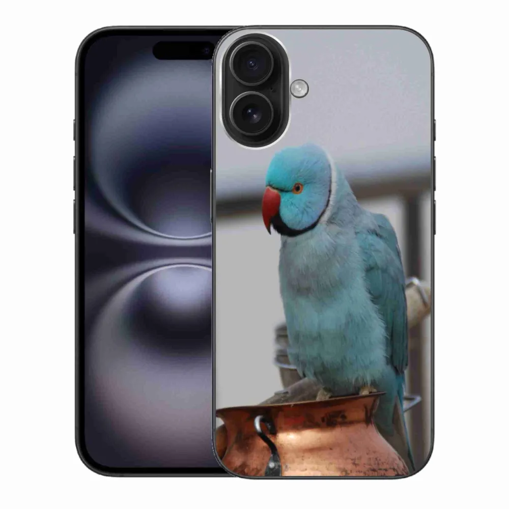 Pružný gelový obal mmCase s obrázkem na iPhone 16 Plus - papoušek alexandr modrý