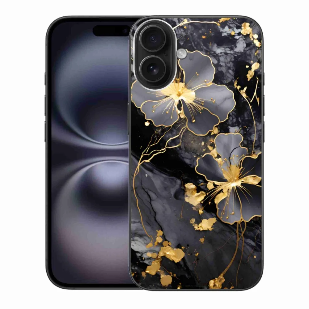 Pružný gelový obal mmCase s obrázkem na iPhone 16 Plus - zlaté květy