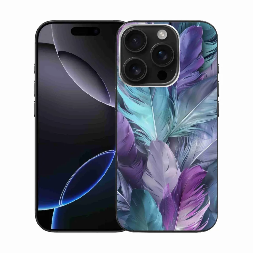 Pružný gelový obal mmCase s obrázkem na iPhone 16 Pro - barevné peří 2