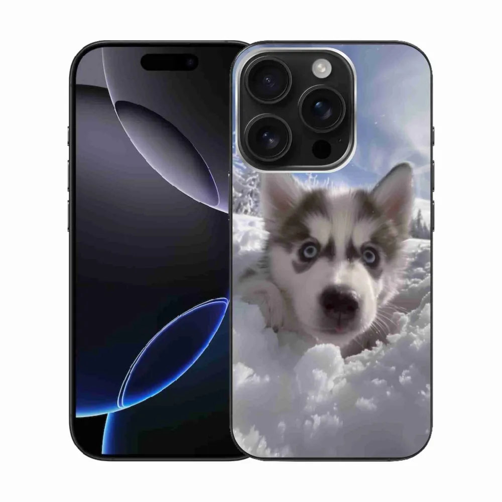 Psí pouzdro na iPhone 16 Pro - husky ve sněhu poskytuje všechny výhody gelových obalů, a to v zajímavém designu.