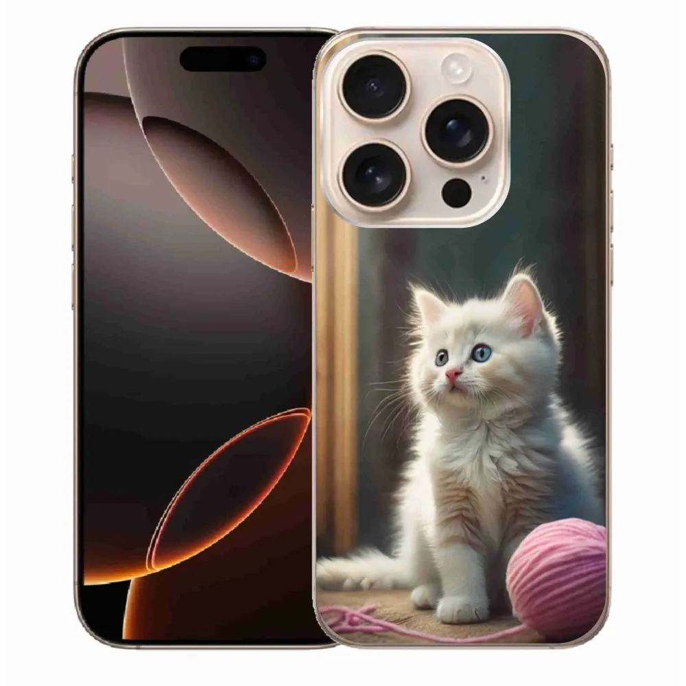 Kočičí pouzdro na iPhone 16 Pro Max - bílé kotě 2 poskytuje všechny výhody gelových obalů, a to v zajímavém designu.
