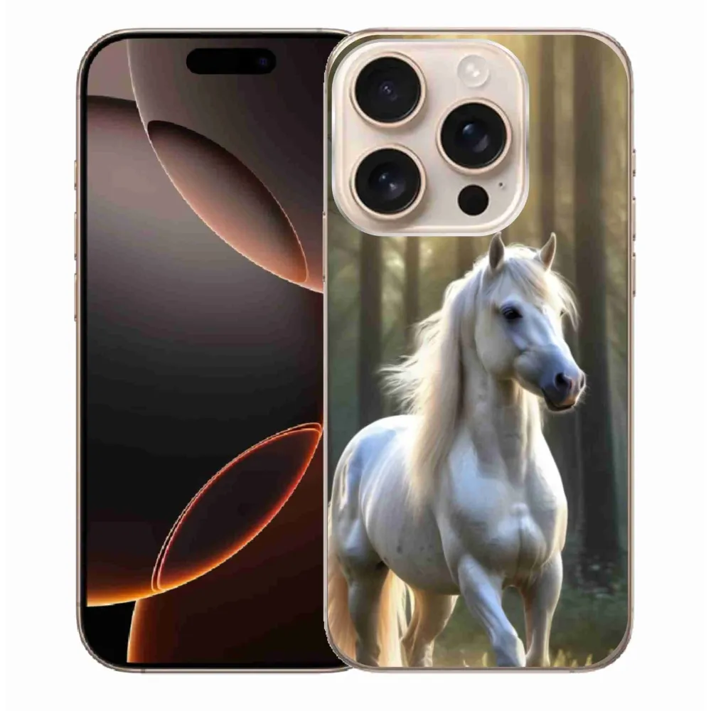 Pružný gelový obal mmCase s obrázkem na iPhone 16 Pro Max - bílý kůň 3