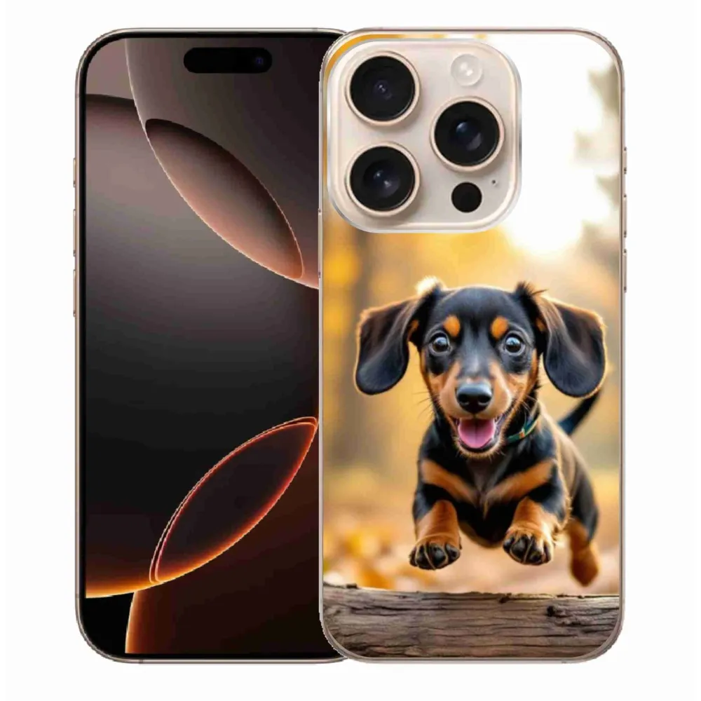 Psí pouzdro na iPhone 16 Pro Max - jezevčík 2 poskytuje všechny výhody gelových obalů, a to v zajímavém designu.