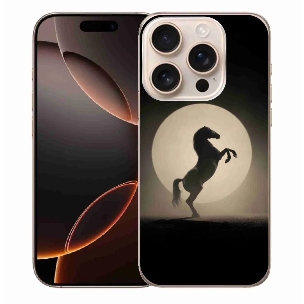 Pouzdro s motivem koně na iPhone 16 Pro Max - kůň v siluetě poskytuje všechny výhody gelových krytů, a to v zajímavém designu.