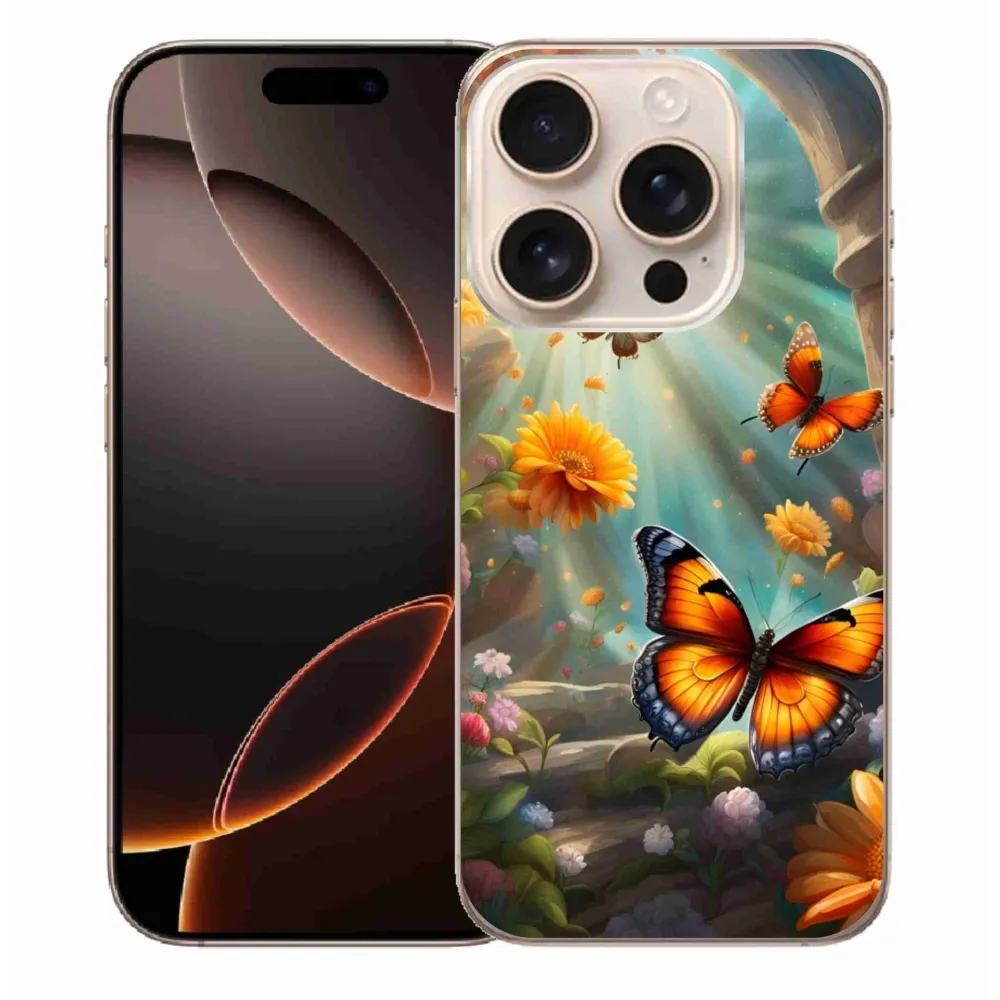 Pružný gelový obal mmCase s obrázkem na iPhone 16 Pro Max - motýlí zahrada 2