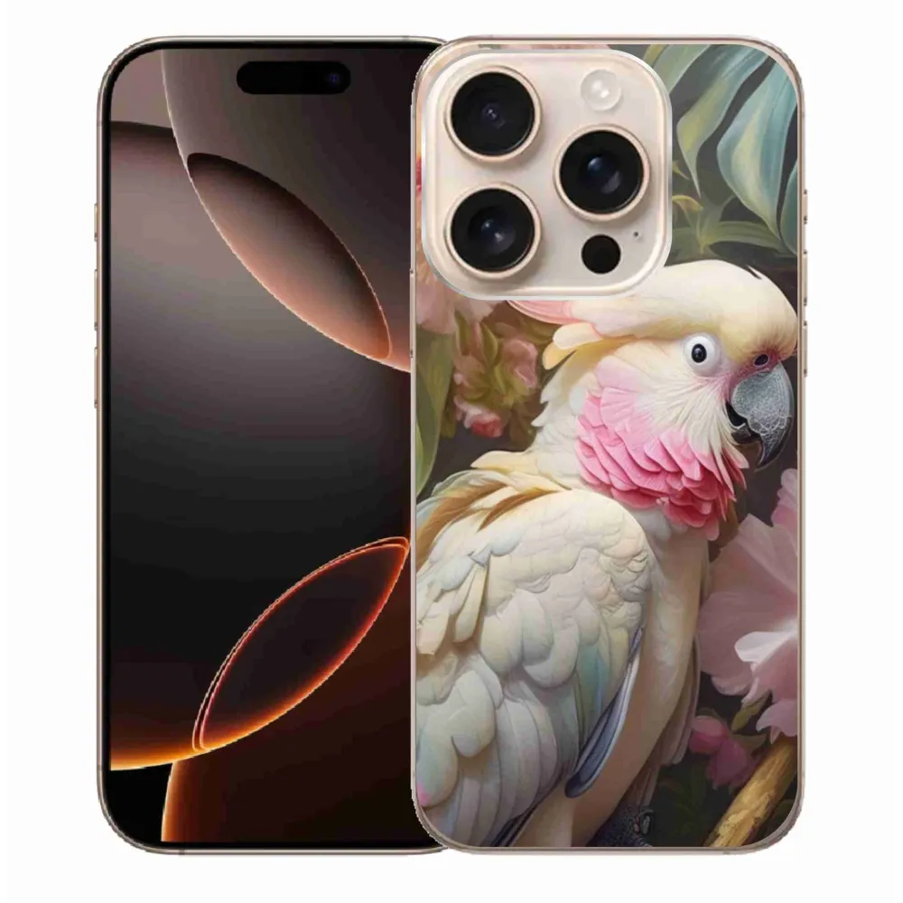 Ptačí pouzdro na iPhone 16 Pro Max - papoušek kakadu růžový 2 poskytuje všechny výhody gelových obalů, a to v zajímavém designu.