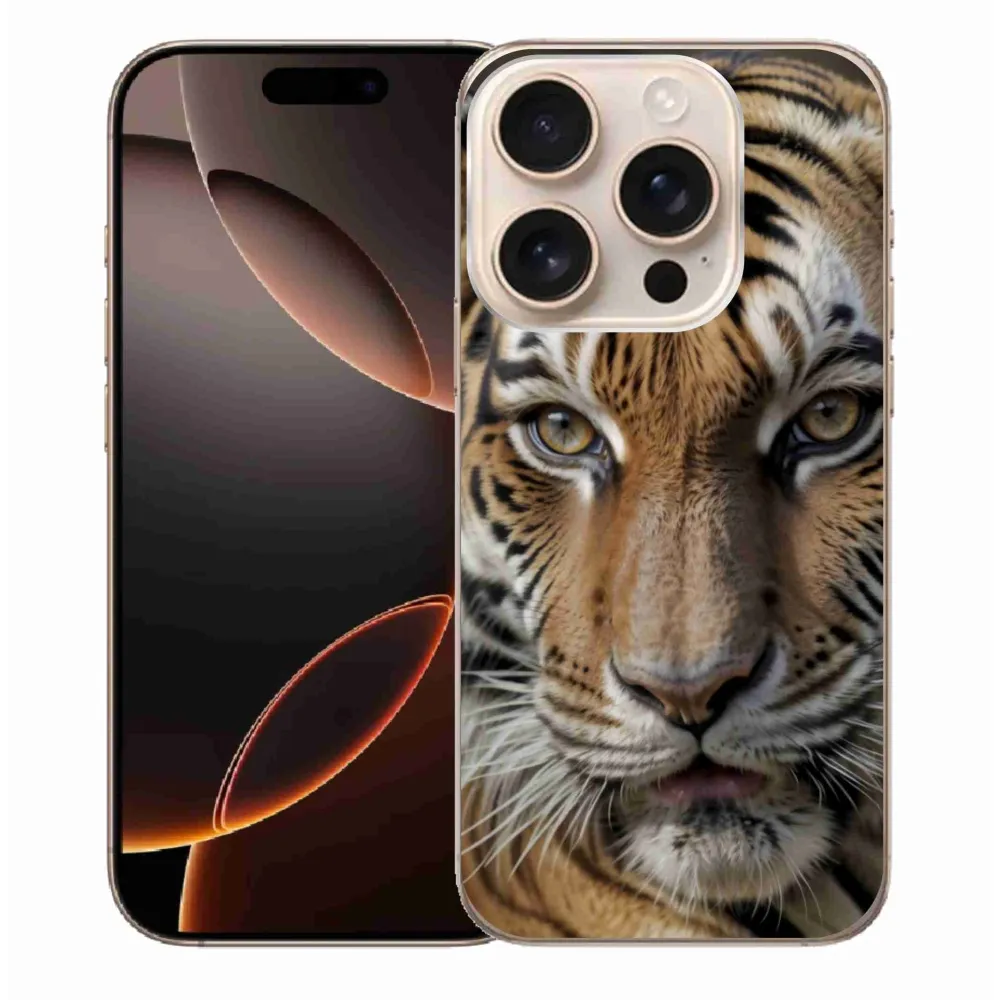 Kočičí pouzdro na iPhone 16 Pro Max - tygří pohled poskytuje všechny výhody gelových obalů, a to v zajímavém designu.