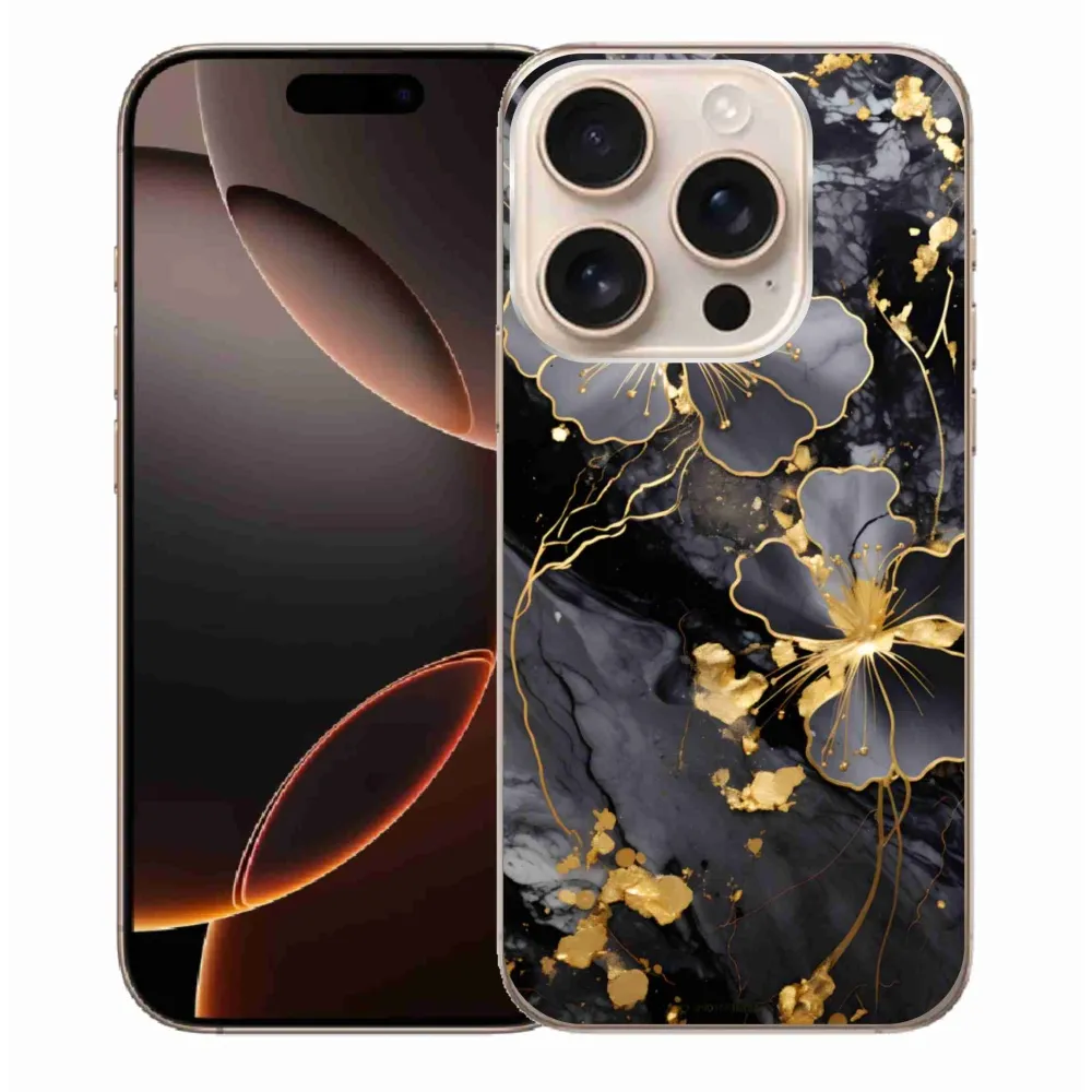 Pružný gelový obal mmCase s obrázkem na iPhone 16 Pro Max - zlaté květy