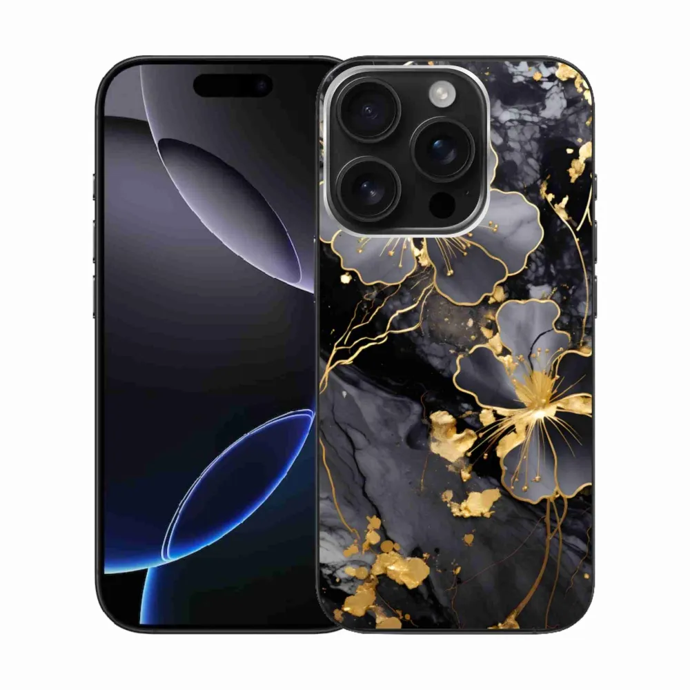 Pružný gelový obal mmCase s obrázkem na iPhone 16 Pro - zlaté květy