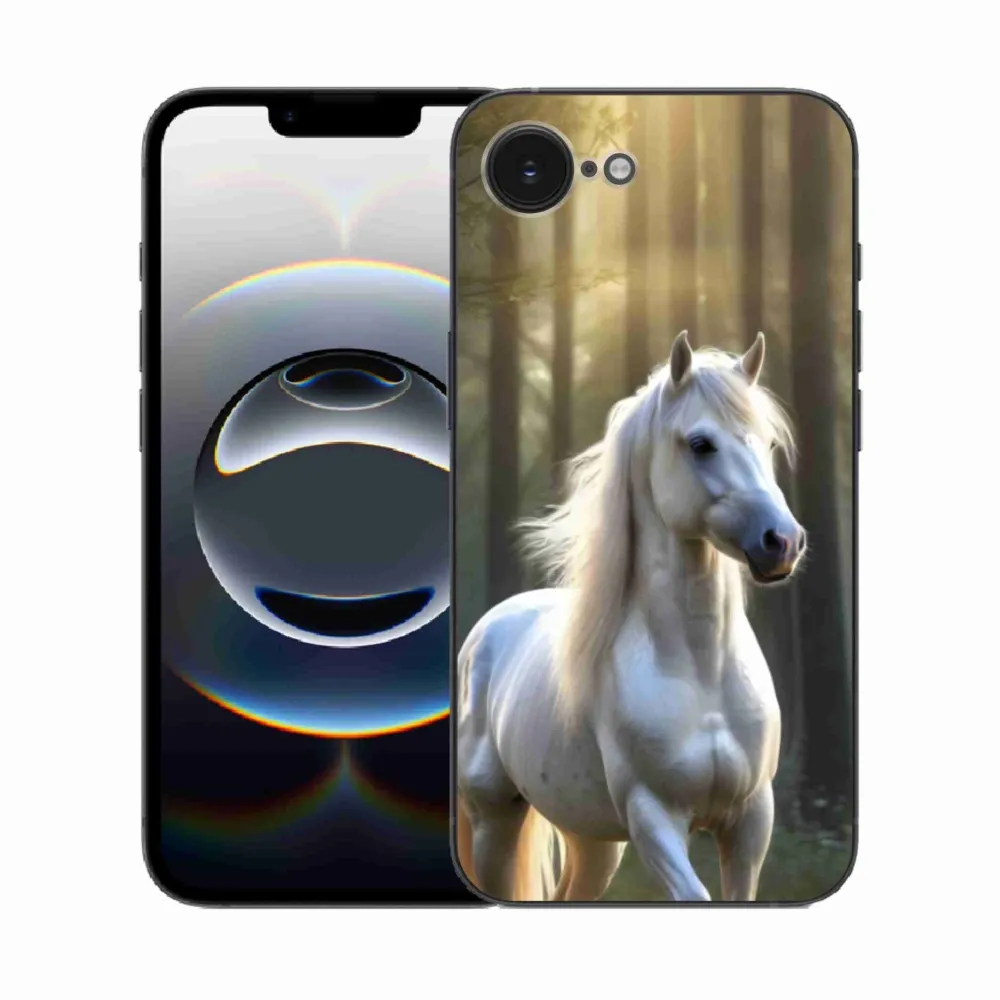 Pružný gelový obal mmCase s obrázkem na iPhone 16e - bílý kůň 3
