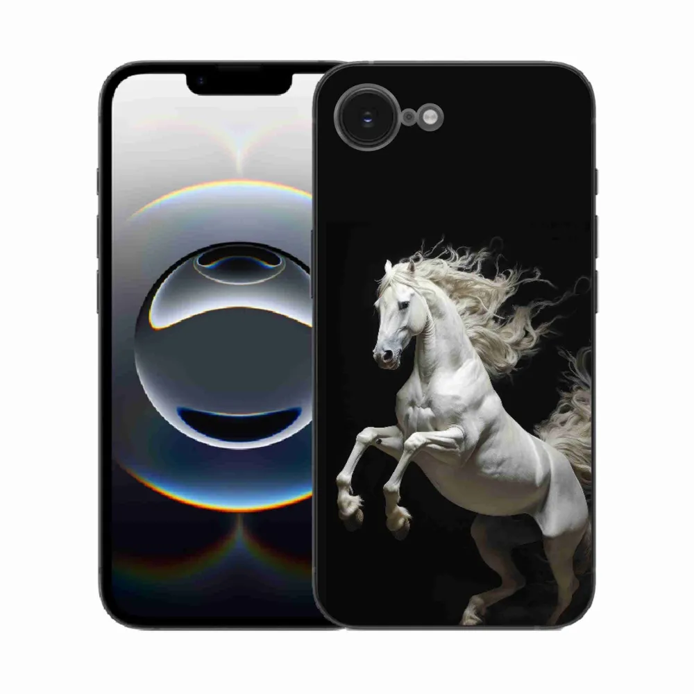 Pružný gelový obal mmCase s obrázkem na iPhone 16e - bílý kůň 4
