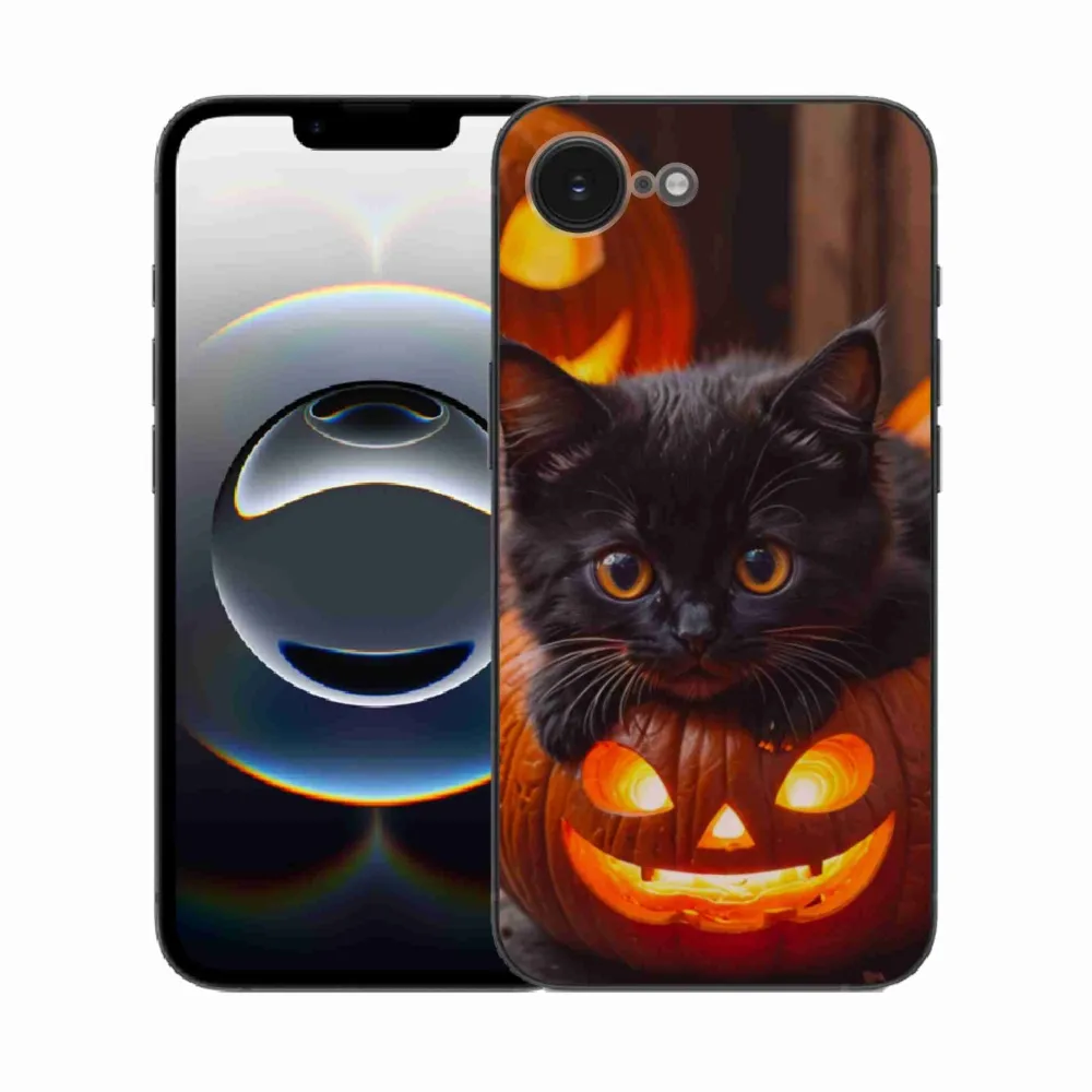Kočičí pouzdro na iPhone 16e - kotě a dýně poskytuje všechny výhody gelových obalů, a to v zajímavém designu.