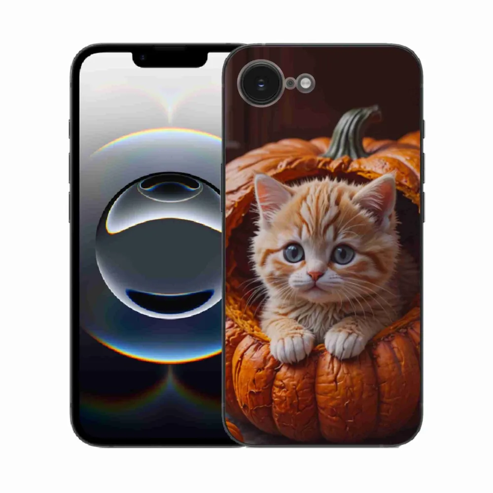 Gelový kryt mmCase na iPhone 16e - kotě a dýně 2