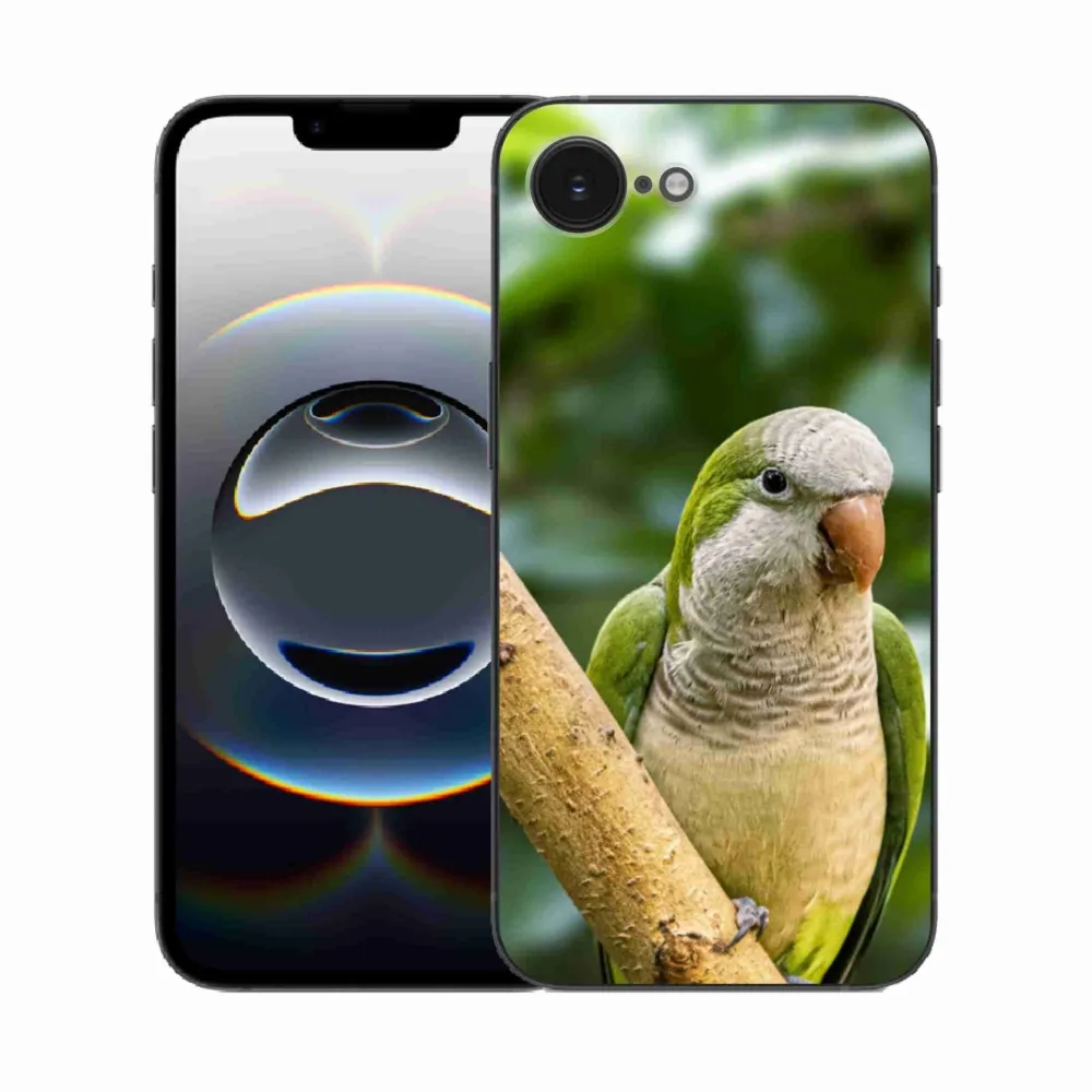 Ptačí pouzdro na iPhone 16e - papoušek mníšek poskytuje všechny výhody gelových obalů, a to v zajímavém designu.