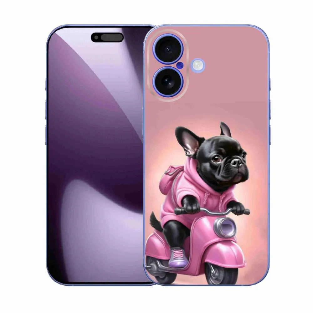 Psí pouzdro na iPhone 17 - francouzský buldoček na skútru poskytuje všechny výhody gelových obalů, a to v zajímavém designu.