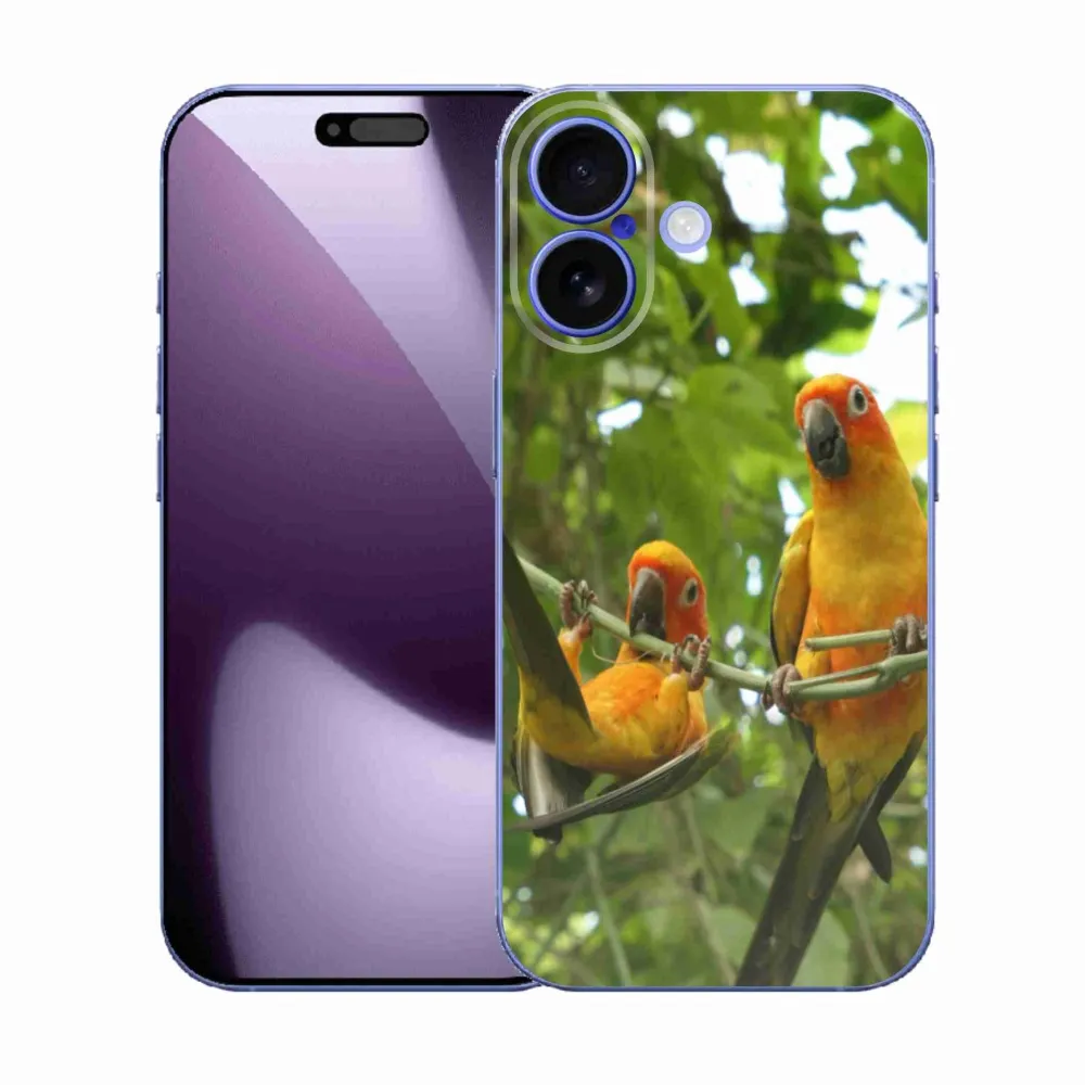 Pružný gelový obal mmCase s obrázkem na iPhone 17 - papoušci aratingy