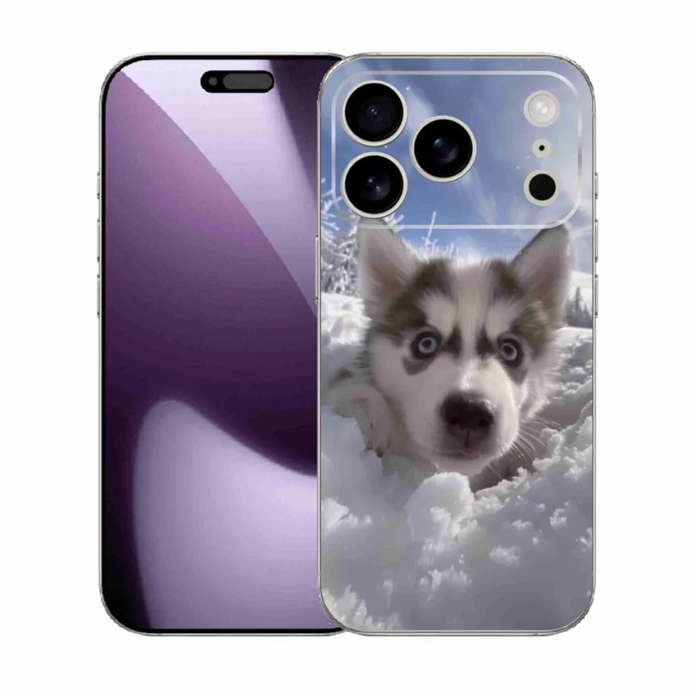 Psí pouzdro na iPhone 17 Pro - husky ve sněhu poskytuje všechny výhody gelových obalů, a to v zajímavém designu.