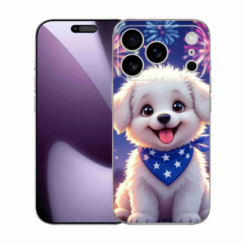 Pružný gelový obal mmCase s obrázkem na iPhone 17 Pro - slavnostní štěně