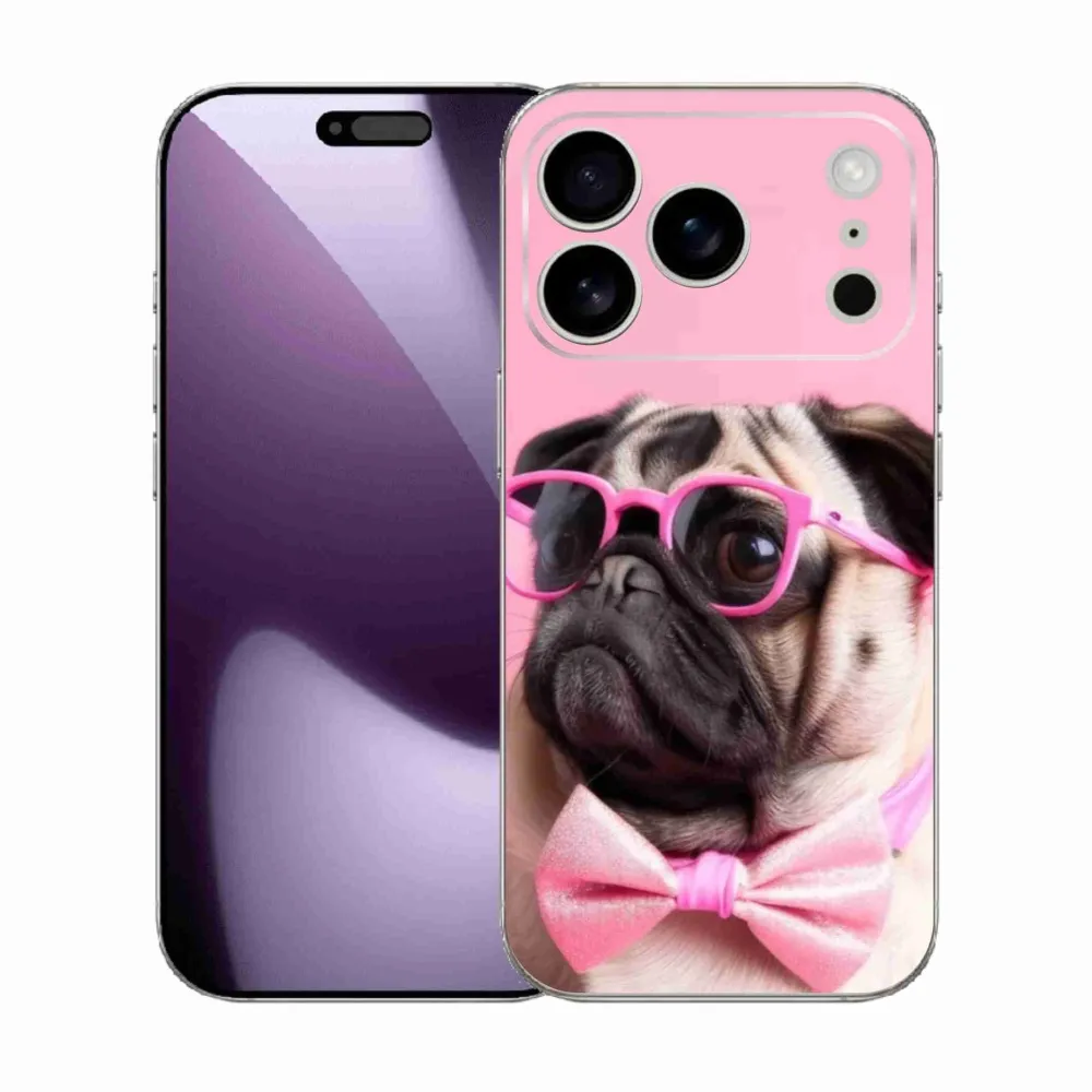 Psí pouzdro na iPhone 17 Pro - stylový mops poskytuje všechny výhody gelových obalů, a to v zajímavém designu.