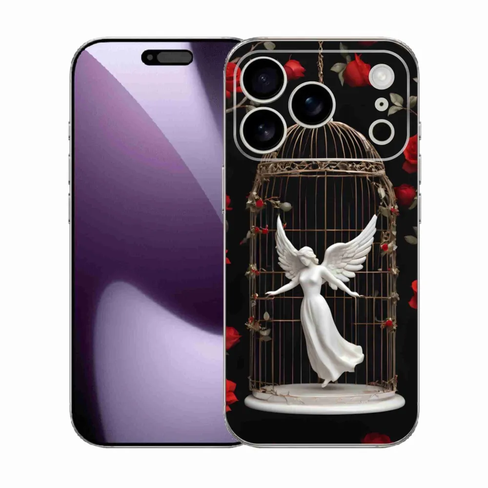 Pouzdro na iPhone 17 Pro - uvězněný anděl poskytuje všechny výhody gelových obalů, a to v zajímavém designu.