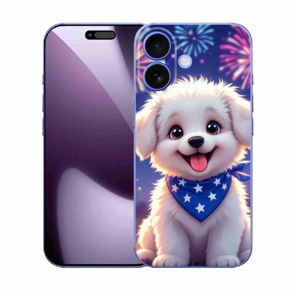 Pružný gelový obal mmCase s obrázkem na iPhone 17 - slavnostní štěně