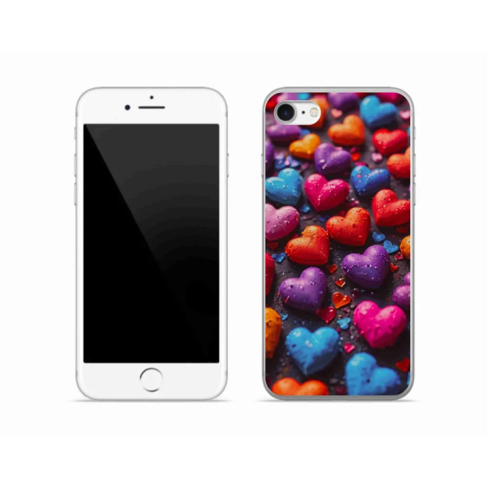 Pouzdro na iPhone SE (2022) - barevná srdce poskytuje všechny výhody gelových obalů, a to v zajímavém designu.