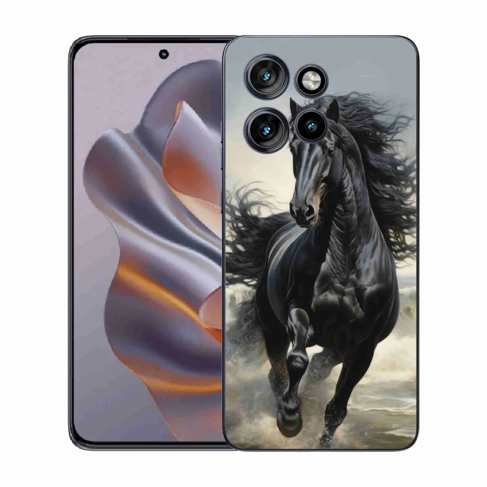 Pružný gelový obal mmCase s obrázkem na Motorola Edge 50 Neo - běžící černý kůň