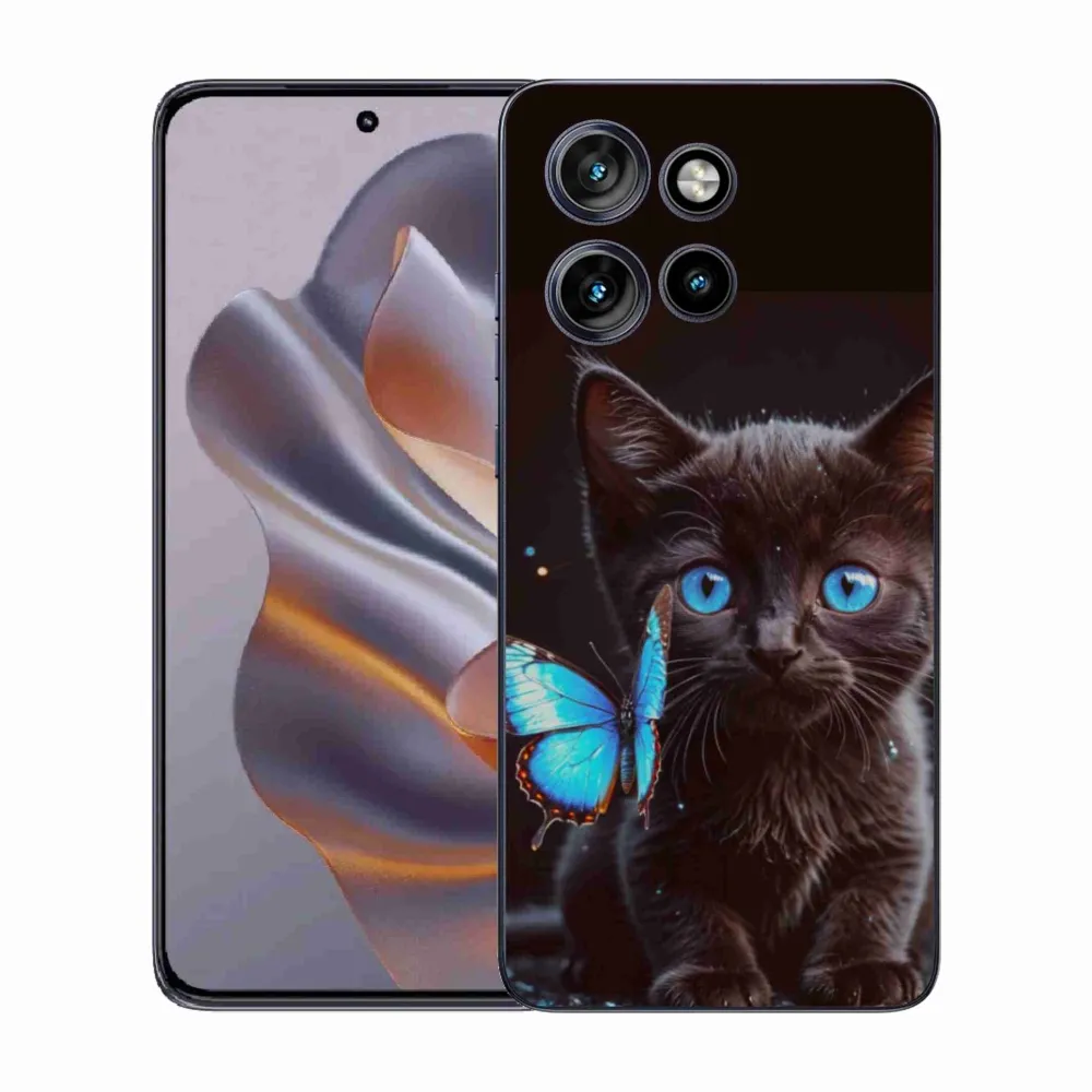 Pružný gelový obal mmCase s obrázkem na Motorola Edge 50 Neo - černé kotě 3