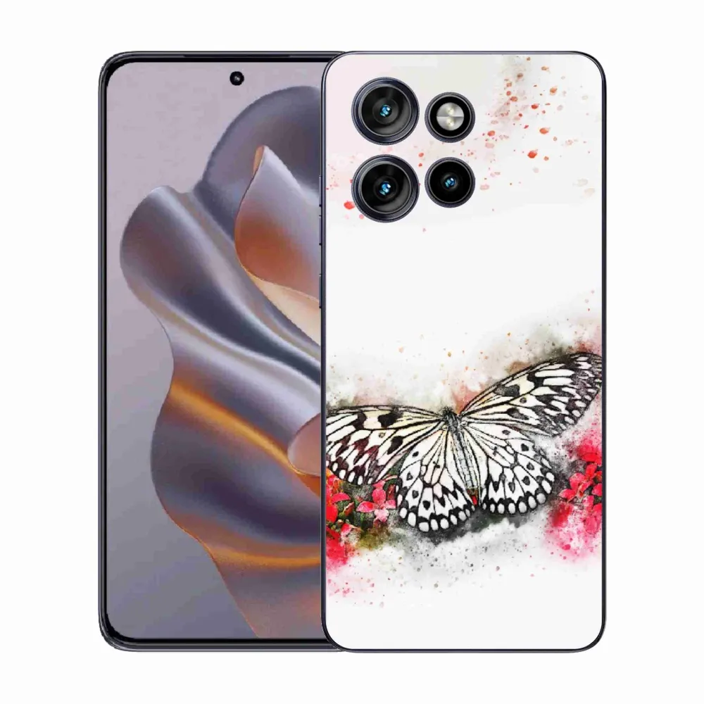 Pružný gelový obal mmCase s obrázkem na Motorola Edge 50 Neo - černobílý motýl