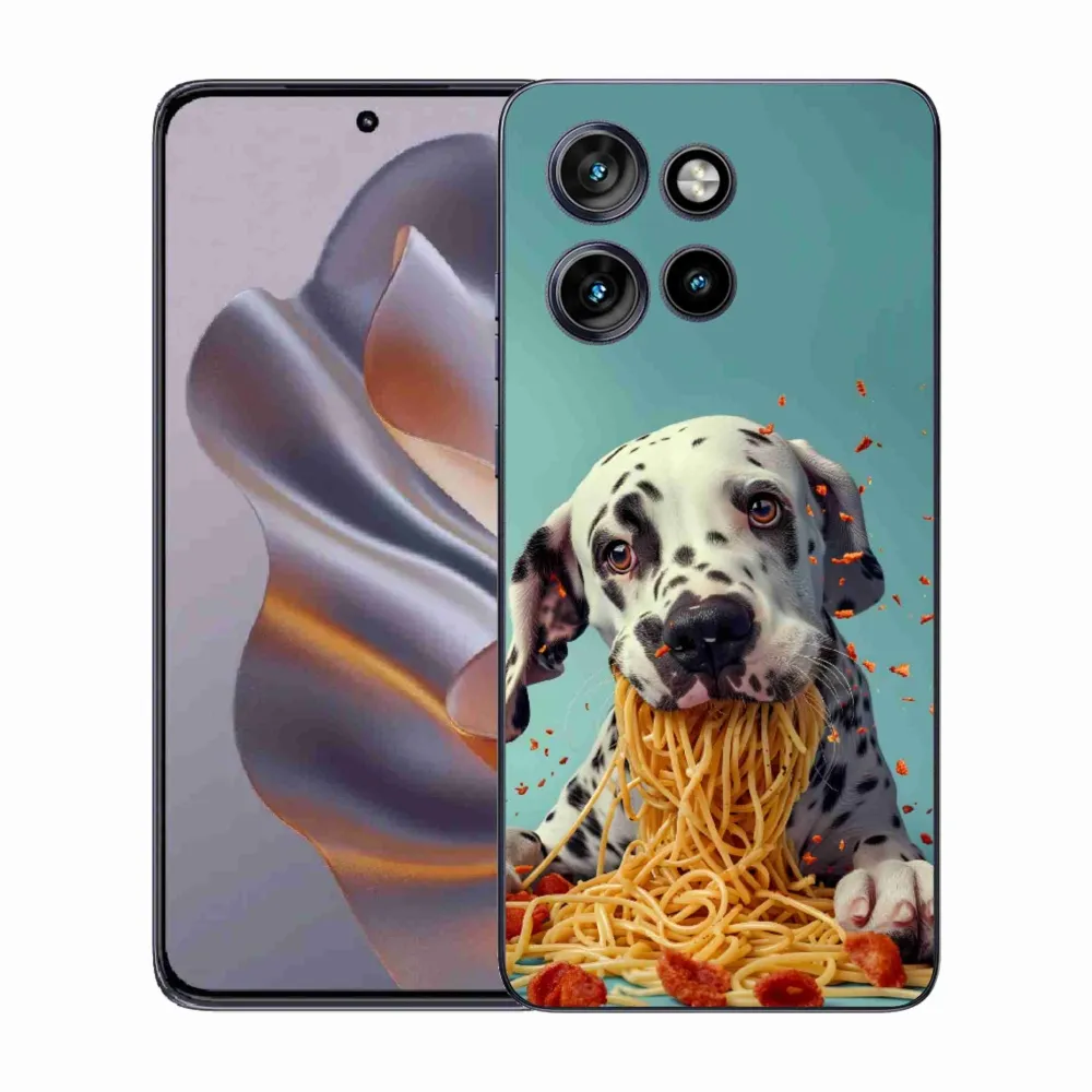 Pružný gelový obal mmCase s obrázkem na Motorola Edge 50 Neo - dalmatin a špagety