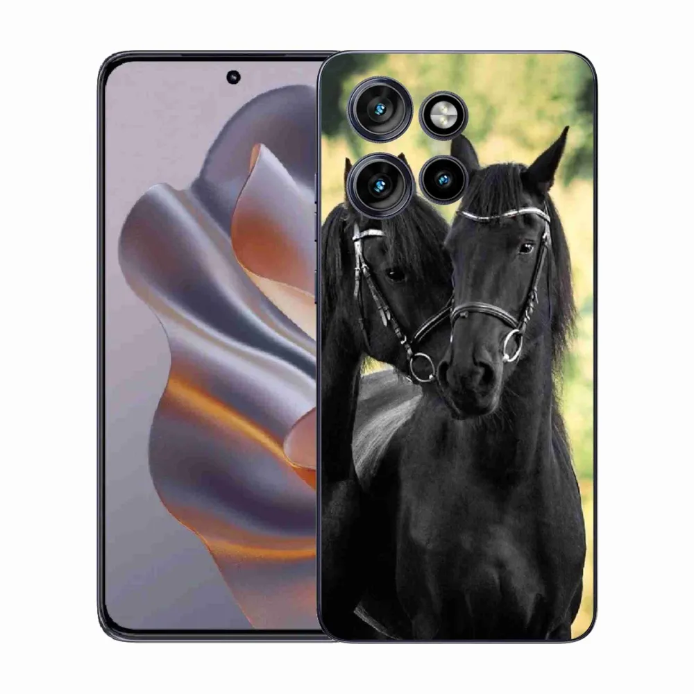 Pružný gelový obal mmCase s obrázkem na Motorola Edge 50 Neo - dva černí koně