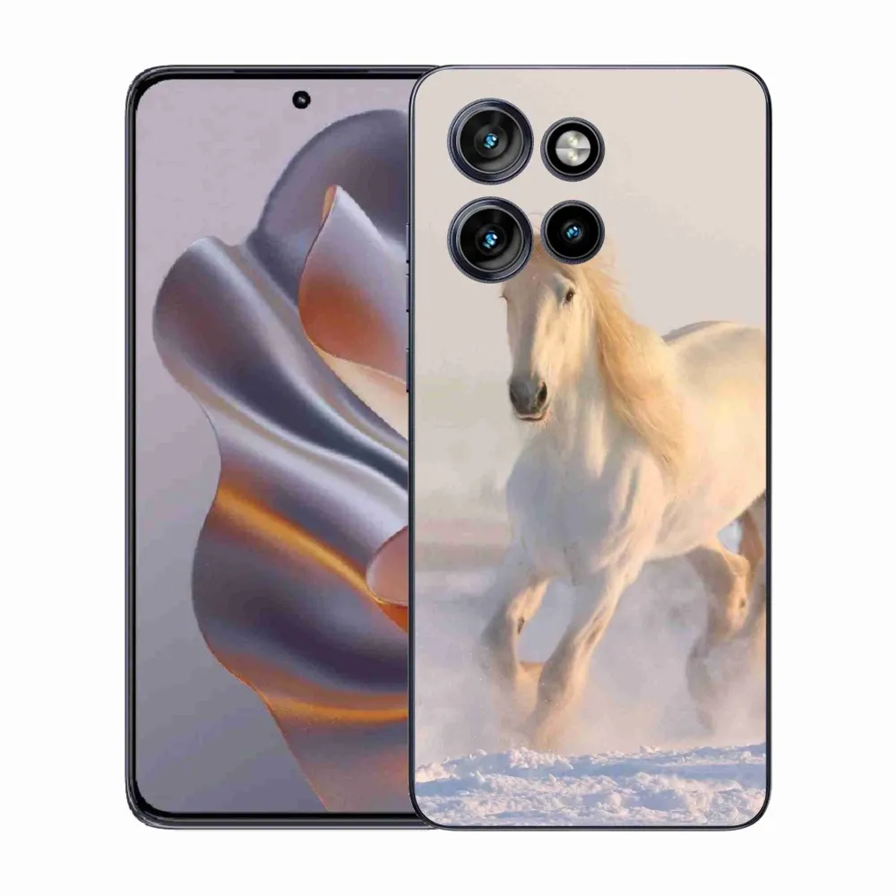 Pružný gelový obal mmCase s obrázkem na Motorola Edge 50 Neo - kůň ve sněhu