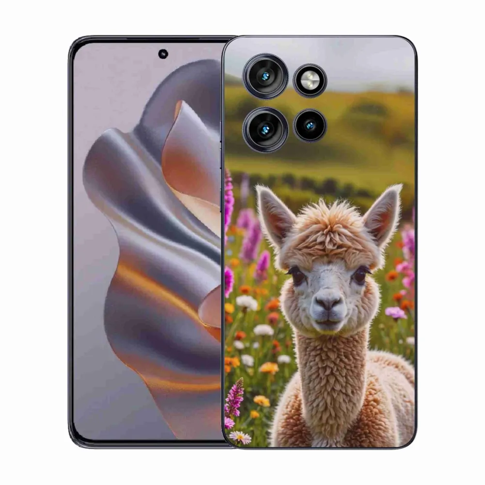 Zvířecí pouzdro na Motorola Edge 50 Neo - lama na louce poskytuje všechny výhody gelových obalů, a to v zajímavém designu.