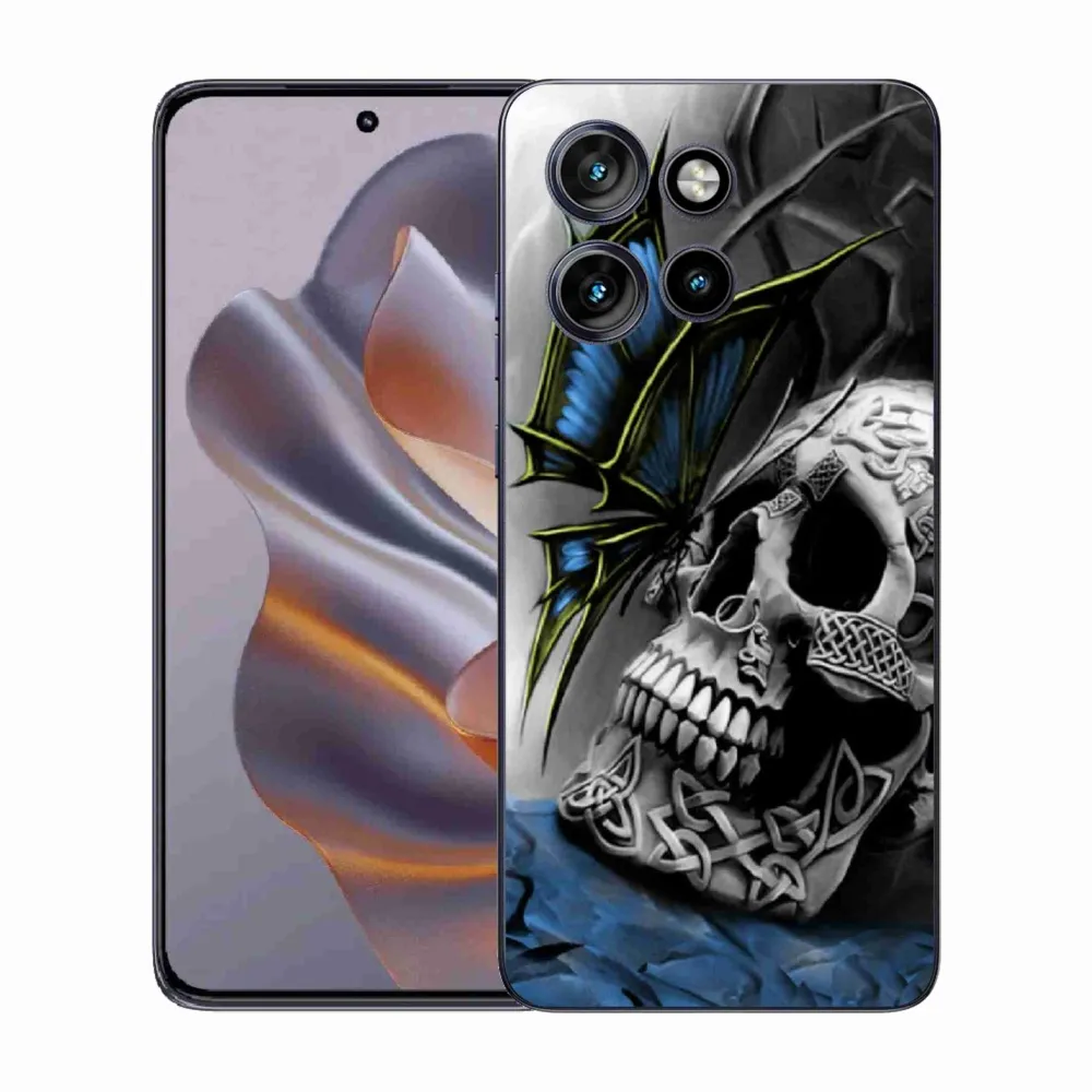 Motýlí pouzdro na Motorola Edge 50 Neo - motýl a lebka poskytuje všechny výhody gelových krytů, a to v zajímavém designu.