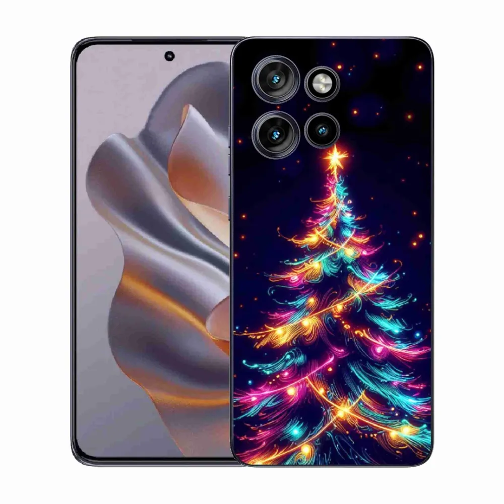 Vánoční pouzdro na Motorola Edge 50 Neo - neonový vánoční stromek poskytuje všechny výhody gelových obalů, a to v zajímavém designu.