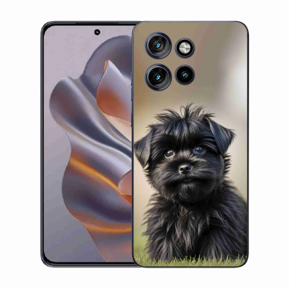 Pružný gelový obal mmCase s obrázkem na Motorola Edge 50 Neo - roztomilý černý pejsek