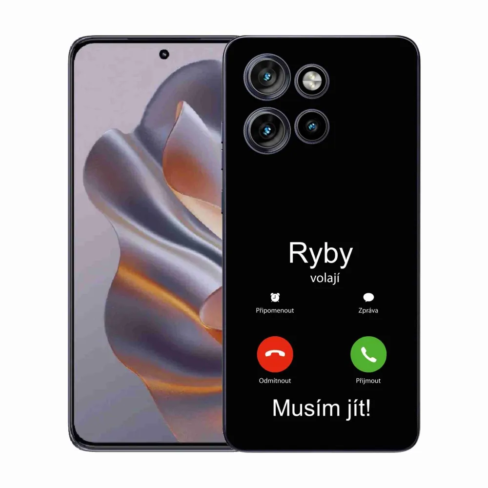 Pouzdro pro rybáře na Motorola Edge 50 Neo - ryby volají černé pozadí poskytuje všechny výhody gelových krytů, a to v zajímavém designu.