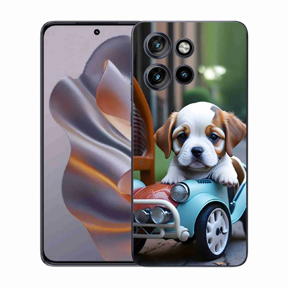 Pružný gelový obal mmCase s obrázkem na Motorola Edge 50 Neo - štěně v retro autě