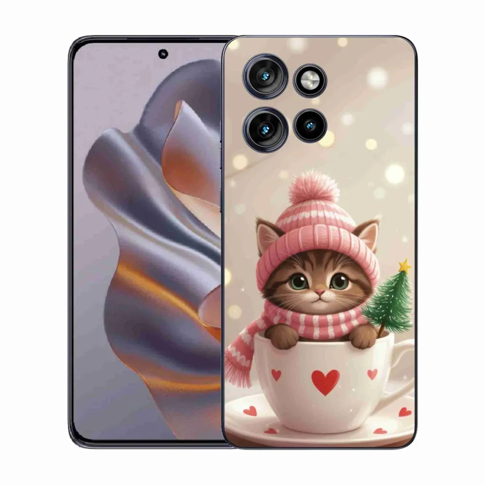 Vánoční pouzdro na Motorola Edge 50 Neo - vánoční kotě v hrnku poskytuje všechny výhody gelových obalů, a to v zajímavém designu.