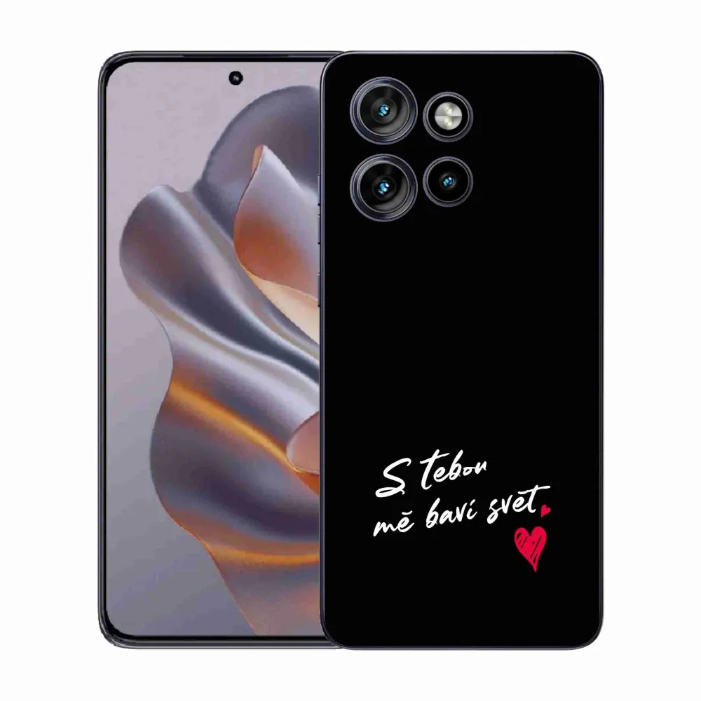 Pružný gelový obal mmCase s obrázkem na Motorola Edge 50 Neo - zamilovaný text 1 černé pozadí