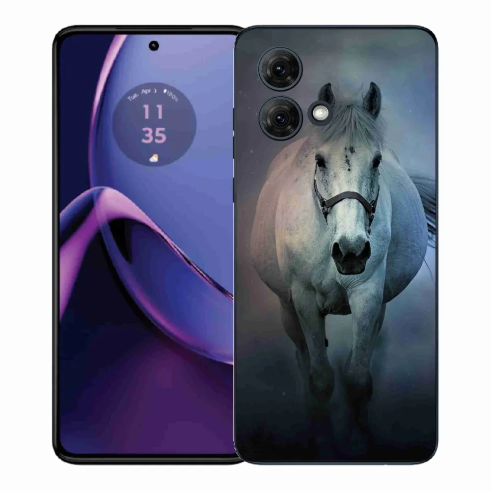 Pružný gelový obal mmCase s obrázkem na Motorola Moto G84 5G - běžící bílý kůň